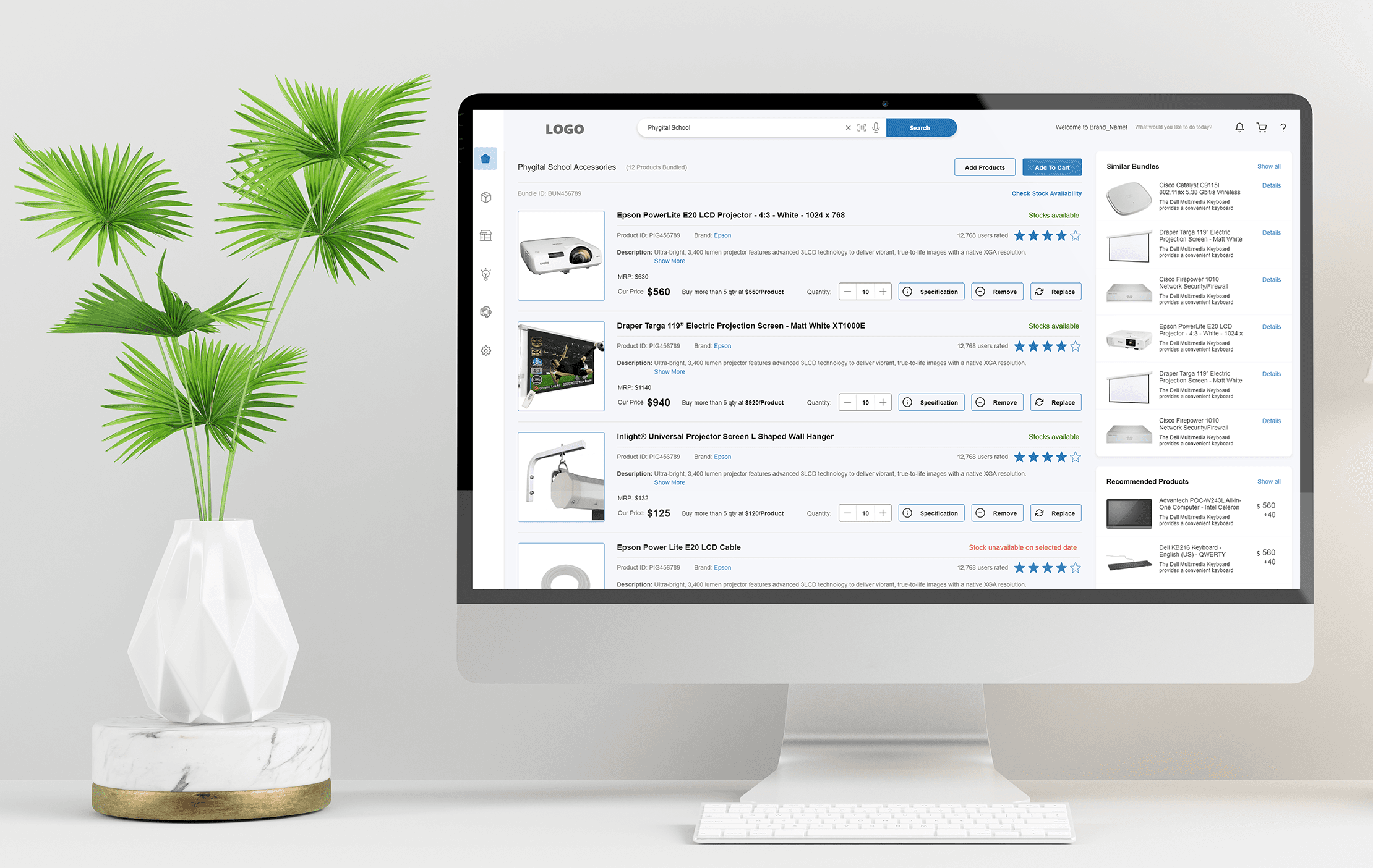 Offers System-driven bundle suggestions based on selected products (e.g., “Customers who bought Surveillance Cameras also bought Installation Kits”)